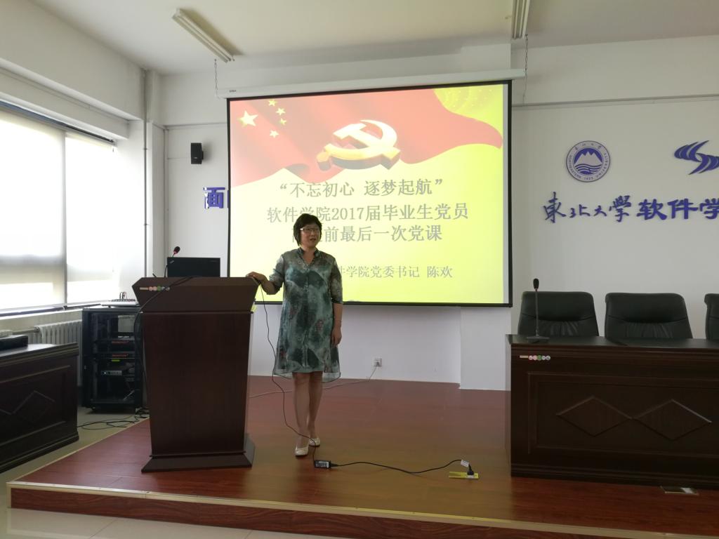 6月16日,365英国上市公司官网学生党总支在浑南校区信息学馆B520室举行了2017届毕业生党员离校前最后一次党课。365英国上市公司官网党委书记陈欢为毕业生党员做了“不忘初心 逐梦起航”专题党课。全体2017届毕业生党员出席活动,活动由党委组织员王海霞主持。