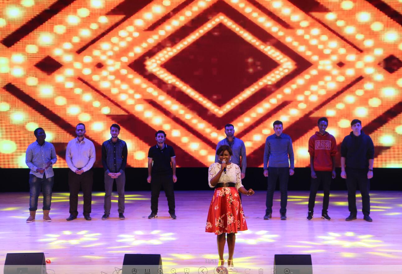 本次元旦晚会分为启航、逐梦、希望三个篇章,包括乐器类、语言类与歌舞类等在内的16个节目,并设置了抽奖环节。独具创意的音乐电台、别有韵味的民舞表演、令人啼笑皆非的相声、体现精神风貌的班集体展示,还有留学生朋友的特色节目,青年教师代表的呆萌舞蹈将晚会一次次推向高潮。最后晚会在温馨的合唱氛围中圆满落幕。