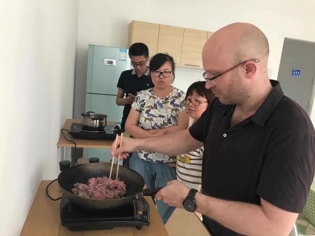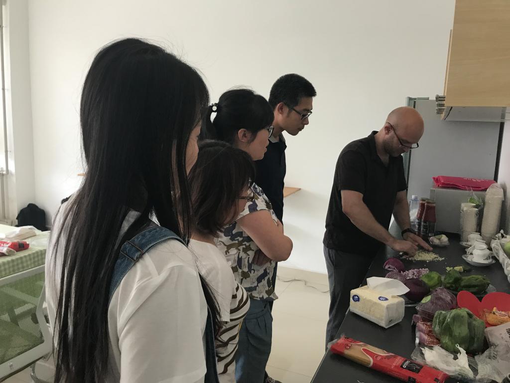 此次活动是为丰富学院教师文化生活,使学院教师更多接触和了解西方饮食文化,加强国际交流,也为促进同事交流,营造轻松愉悦的工作氛围。活动于中午12:30正式开始,活动开始后,泰勒以边做边教学的方式讲解意大利面酱汁的配料准备及做法,在过程中,各位老师主动参与,配合Taylor完成了意大利面的制作。制作结束后,大家一起分享劳动果实,纷纷表示团结协作的意大利面别有滋味。活动在轻松愉悦的氛围中开展,并圆满结束。
