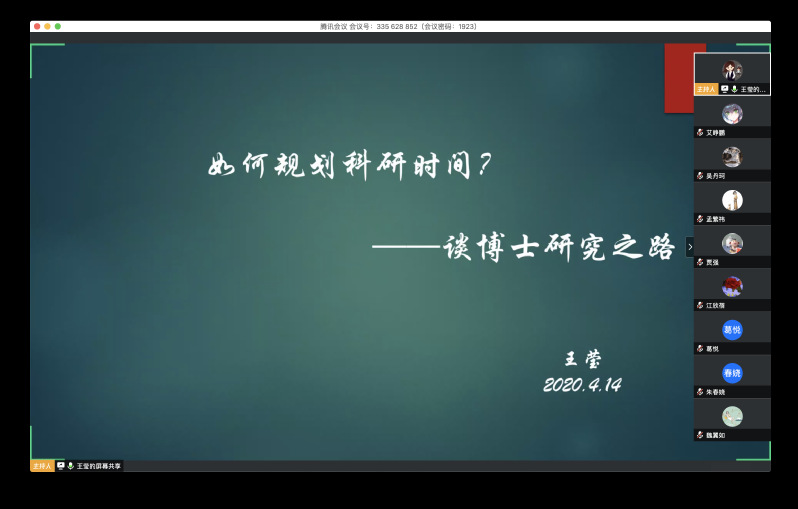 4月14日,365英国上市公司官网举办博士生学术沙龙,学院博士毕业生、学院副教授王莹为全院博士研究生以及有意愿读博士的硕士研究生作了题为“如何规划科研时间?——谈博士研究之路”的主题报告。此次报告在腾讯会议平台线上举办。