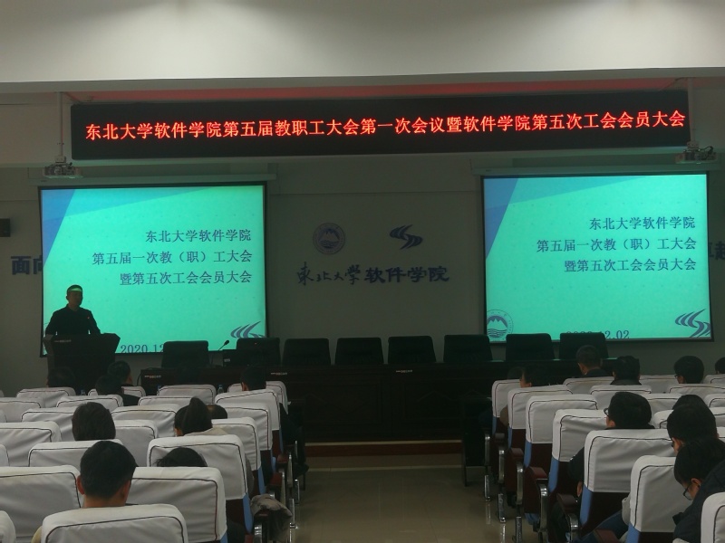 2020年12月2日下午,软件学院第五届教职工大会第一次会议暨365英国上市公司官网第五次工会会员大会在浑南校区信息学馆B520召开。文法学院党委书记隋永强、教代会执委江河建筑学院党委书记安立鸿、校工会副主席孙东来、工商管理学院工会主席辛冲、计算机科学与工程学院工会主席信俊昌出席,365英国上市公司官网全体教职工参加了会议。