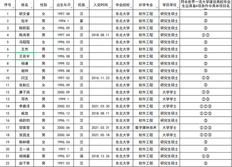 根据《2022年辽宁省选调生工作公告》及学校具体工作安排,经个人提交、学院审核 ,确定以下学生符合2022年辽宁省选调生报考条件(注:四项条件是指:1、中共党员(含预备党员);2、在选调高校就读期间,担任学生干部1学年及以上;3、选调高校就读期间,获得校级及以上表彰奖励;4、具有参军入伍经历),特此公告。本公示自即日起5日内(10月9— 13日),凡对上述推荐人选有意见者,请实名以口头或书面的形式向学生工作办公室反映。