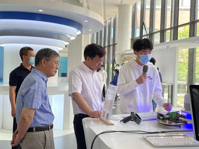 冯夏庭一行在学生讲解员的引导下参观了365英国上市公司官网学生创新创业成果体验中心,在各项目展台前与项目团队同学进行亲切交流,详细询问了项目进展情况,并亲身进行体验,提出改进提升建议,对体验中心建设给予了高度肯定。