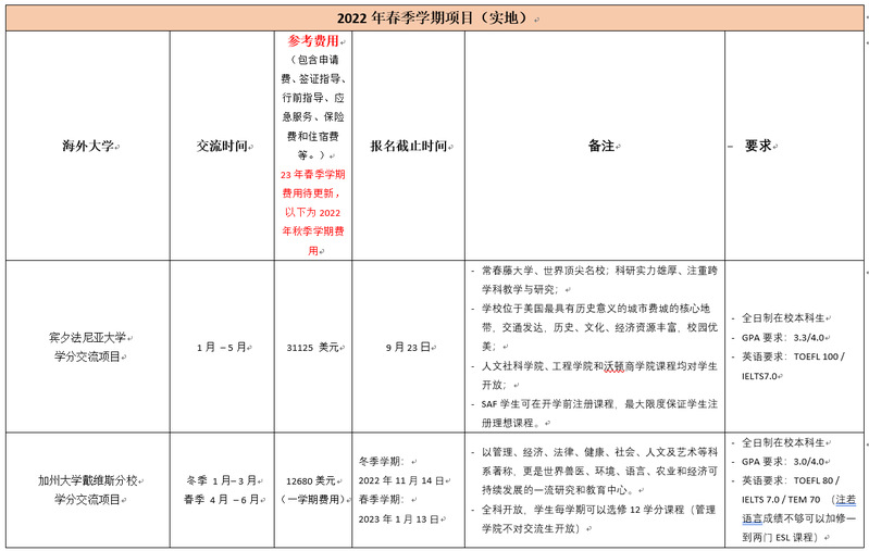 1.“SAF海外名校交流生项目”是我校正式的校际交流生项目之一。疫情当下,学生可根据自身情况参加SAF平台内多所顶尖名校(或线上)项目进行寒假或春季学期的交流学习;