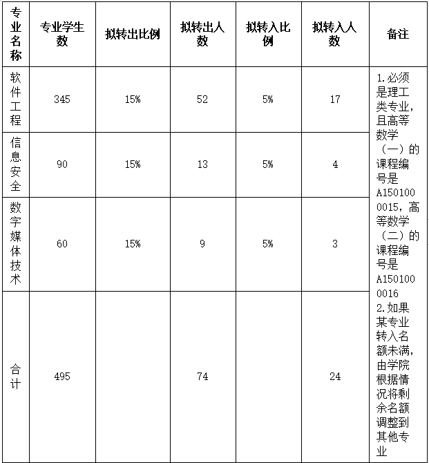 6.学院在官方网站对拟转出学生的信息(主要包括学生姓名、原专业、拟转入专业、专业成绩排名、支撑材料)进行公示,公示期不少于3个工作日。