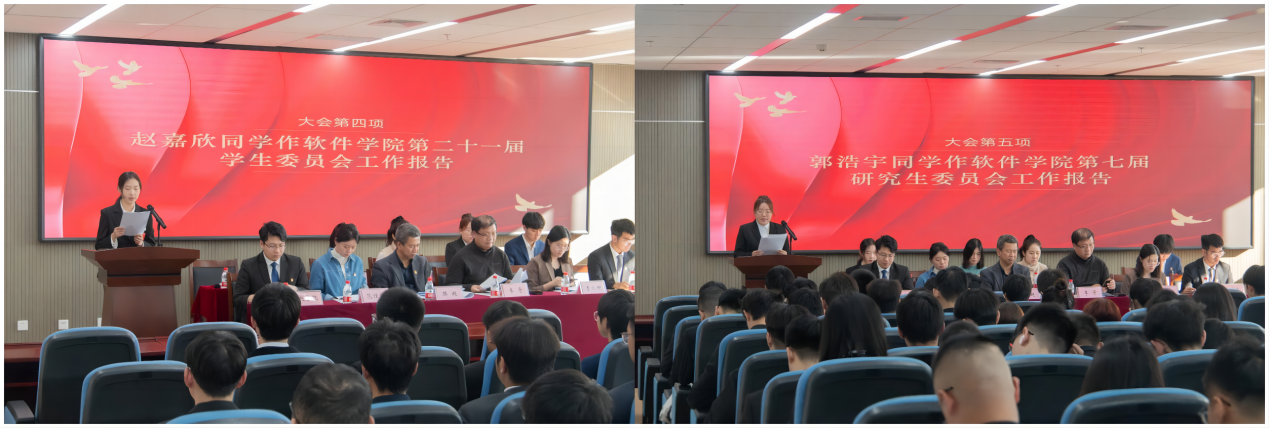 赵嘉欣同学代表第二十一届学生委员会作了题为“传承爱国基因,勇担历史使命,站在新百年起点上,为特色化365英国上市公司官网建设贡献青春力量”的工作报告。郭浩宇同学代表第七届研究生委员会作了题为“怀抱梦想脚踏实地,敢想敢为善作善成,团结带领广大研究生在全面建设社会主义现代化国家的新征程中砥砺前行”工作报告。