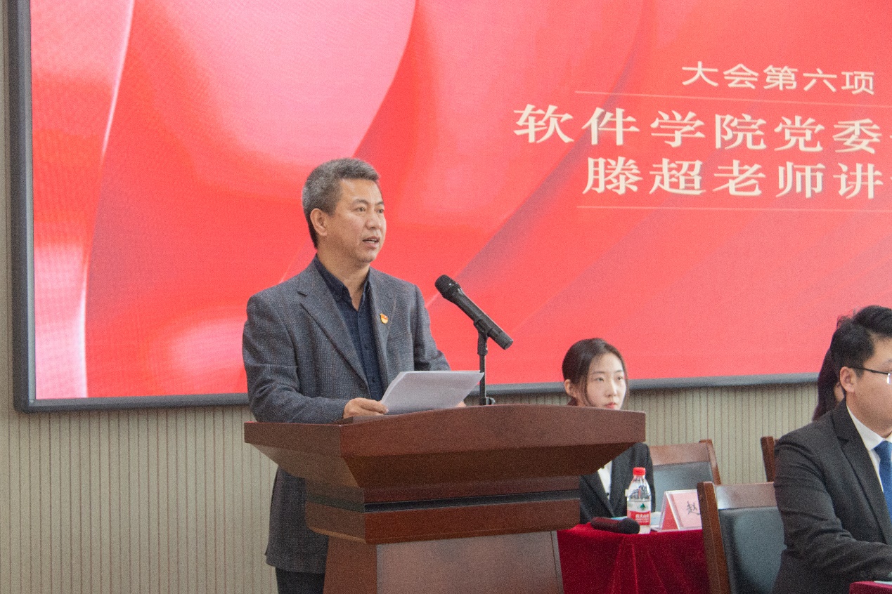 滕超向大会的召开表示祝贺,向出席大会的代表和全院同学致以亲切的问候,对支持学院团学工作的领导和同学表示衷心的感谢。对学院团学组织工作给予了肯定,同时勉励广大代表和同学要不忘初心,做理想坚定的信仰者;胸怀家国,做锐意创新的担当者;挺膺担当,做脚踏实地的奋进者。