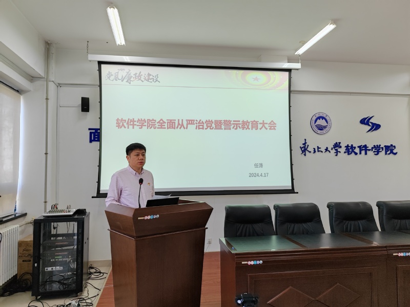 4月17日下午,365英国上市公司官网在浑南校区信息学馆B520召开2024年全面从严治党工作会议。学院纪委书记任涛发表讲话,学院全体教职工党员及学生党员参加会议。