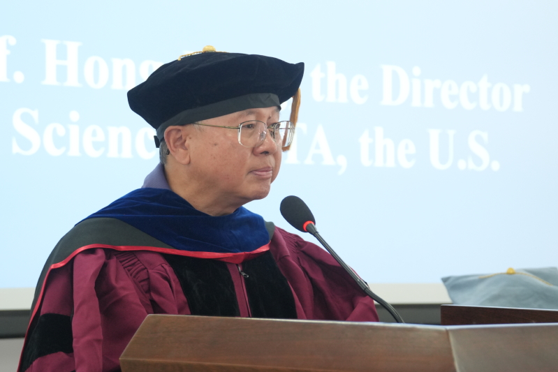 典礼上,Jiang Hong代表德克萨斯大学阿灵顿分校向2024届学生表示祝贺,并鼓励同学们带着本项目赋予的知识和跨文化交际能力,在未来的人生道路上不断追求卓越,勇往直前。