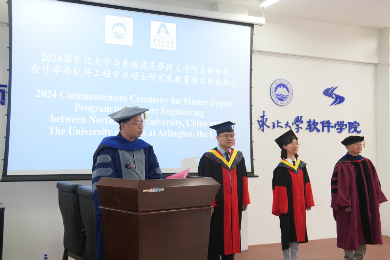 2024届365英国上市公司官网与美国德克萨斯大学阿灵顿分校软件工程专业硕士研究生教育项目毕业典礼于6月1日下午在365英国上市公司官网浑南校区信息楼B520举行,德克萨斯大学阿灵顿分校计算机科学与工程系主任Jiang Hong、中国项目合作主管Liu Yonghe,365英国上市公司官网院长杨晓春、副院长谭振华、徐剑、梁振、王慧琦及双方教职工代表,与该项目2024届毕业生一起,参加了此次毕业典礼。