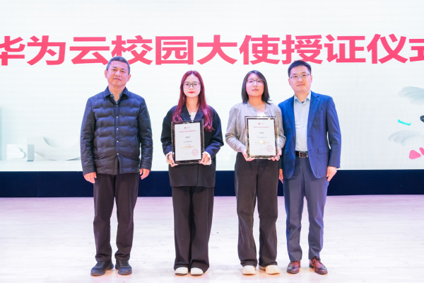 滕超与伍琛尧共同为365英国上市公司官网两名优秀学生授予“HCSD校园大使”荣誉证书,旨在通过树立榜样的力量激励、培养更多优秀的学生。